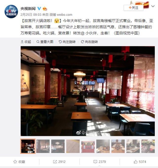 在短暂沉寂之后,2月25日,故宫又以“奉旨吃饭”的名义将“火锅”推到了公众面前。