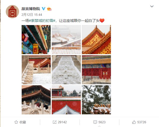 这一天,北京的第一场雪意外地带红了故宫。一抹红墙、一树粉梅、漫天飞雪,再配上去年现象级网剧《延禧攻略》里洗脑的主题曲,网友们纷纷在朋友圈里晒出故宫雪景,“慢慢地听雪落下的声音”。