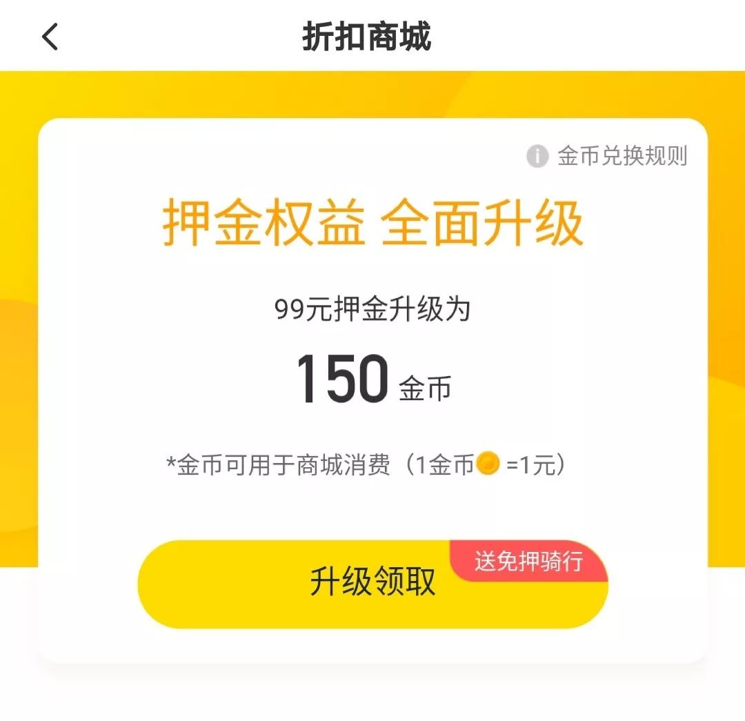 记者打开ofo小黄车的App,发现申请退押金的用户可以选择将押金兑换成购物金币,99元押金可以兑换成150金币,199元押金可以兑换成300金币,1金币等于1元。然后用户可以单独使用金币、或者采用金币+现金的方式在商城中换购商品。