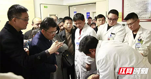 黄惠勇一行先后来到常宁市中医院门诊部、国医馆、骨伤三科、骨伤康复科,详细了解南詹正骨疗法发展、传承、创新等情况,充分肯定了以南詹正骨疗法为核心技术的中医药技术在各科室临床应用。在该院国医馆黄惠勇现场观摩了南詹正骨疗法传承人肖运生、肖伟手法整复肱骨外科颈粉碎性骨折。在骨伤三科黄惠勇对南詹正骨传承人唐超雄运用南詹正骨专长绝技南詹正骨理经刀、南詹正骨鹤嘴式整骨钳、南詹正骨波浪板、詹氏古法悬吊法治疗锁骨骨折、腰椎压缩性骨折精湛的医疗技术十分震撼。在询问患者在治疗过程中的身心感受时,患者表示这种中医治疗方法不怎么痛苦,术后人一下轻松了许多。黄惠勇对南詹正骨奇特的疗效频频称赞。