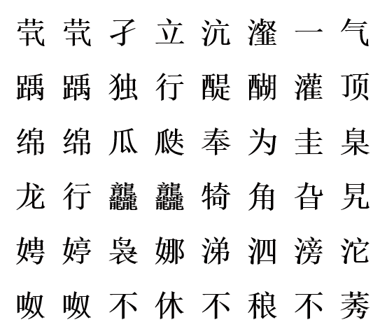 觌氅、餮屾、飨乪、磲蕤、睡觉、颥鳎、鹕鲦、鲻耱、貘匚、吃饭、鍪籴、耋瓞、耵鸫、鲕烃