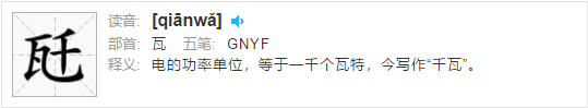 瓦片的瓦,里面加个千万的千,念什么?瓩qiānwǎ!