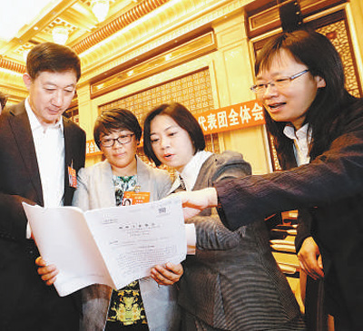 3月7日,代表们进行讨论。