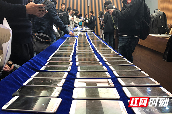 10月29日凌晨4时许,在芙蓉公安分局9楼专案指挥部,随着市公安局副局长韦树恒的一声令下,部督“10.08”专案集中收网行动全面展开,相继抓获犯罪嫌疑人187名,捣毁作案平台2个、工作室5个,扣押电脑30余台、手机800余台,查扣、冻结银行卡30余张、资金200余万元。