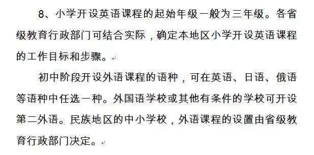 同年,教育部印发《义务教育课程设置实验方案》,规定“小学开设英语课程的起始年级一般为三年级”,“初中阶段开设外语课程的语种,可在英语、日语、俄语等语种中任选一种。外国语学校或其他有条件的学校可开设第二外语。”