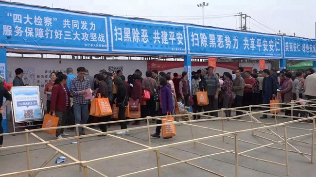 红网时刻3月22日讯3月21日,我县在赶分社节会现场开展主题为“扫除黑恶势力,共享平安安仁”宣传活动。县委书记李小军,县委常委、县政法委书记李国文,县领导周劲凌、钟新文、李贵军等参加活动。