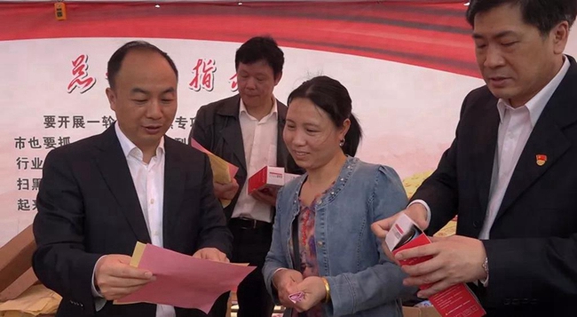 在活动现场,李小军巡视了各扫黑除恶成员单位的工作情况,了解宣传效果,并与工作人员一起给群众发放扫黑除恶、禁毒、防骗防诈等宣传资料。