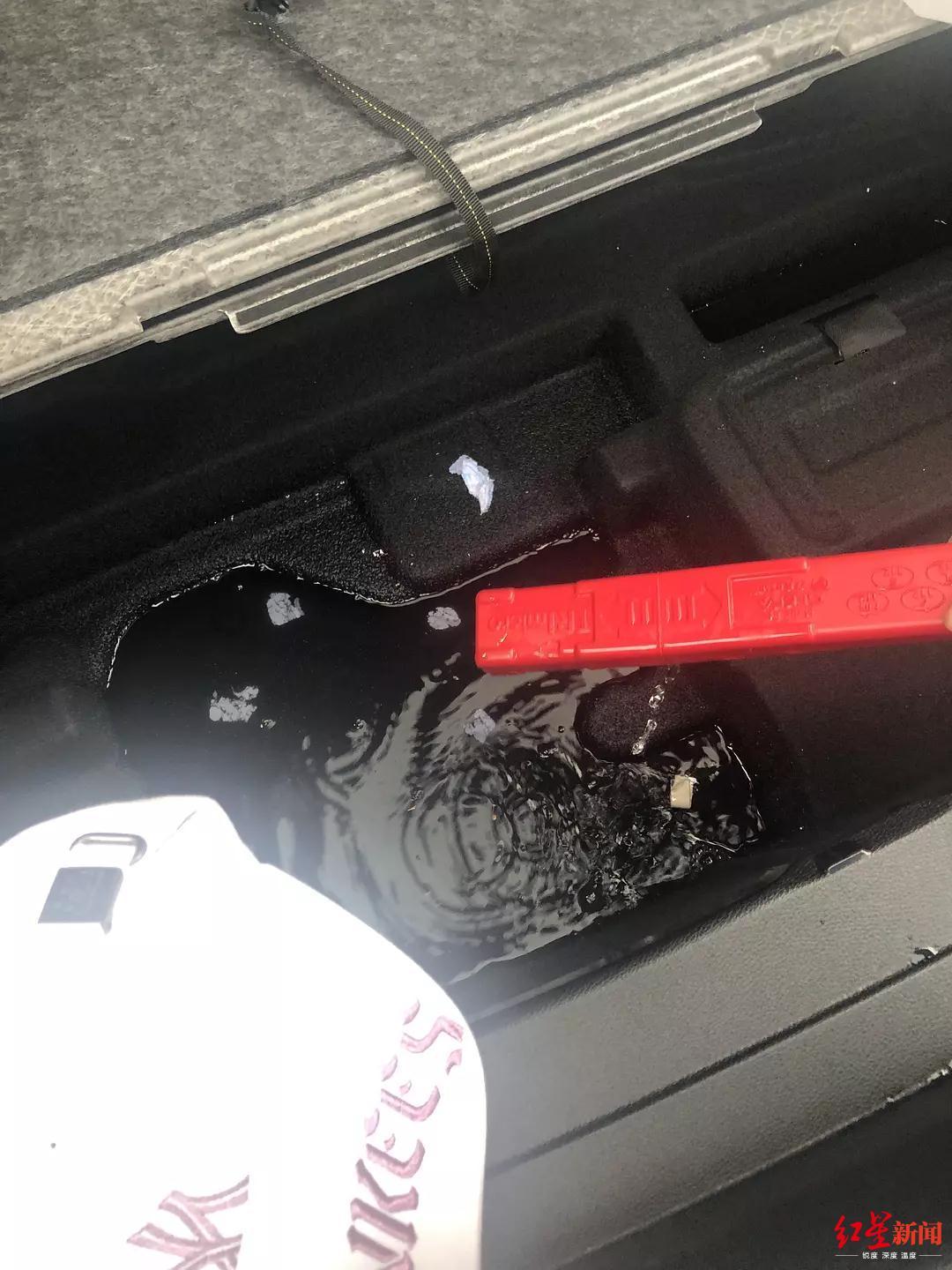 3月初某天,张小姐装行李时,打开了后备箱,发现整个后备箱湿透了,“我拉开后备箱的垫子,发现下面的积水已经可以养鱼了,保险丝上也有水珠,尾灯里面也有水。”张小姐告诉红星新闻记者,新车买回仅一个月,自己连牌照都没有上,发生这样的事情,她不要求退货,只希望奔驰4S店能给自己换一台同样型号的新车。
