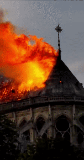 巴黎圣母院大火。这座巍然耸立了800年,由莫里斯主教和雨果共同打造的辉煌教堂,在世界一片扼腕叹息中倒下了塔楼。
