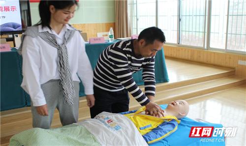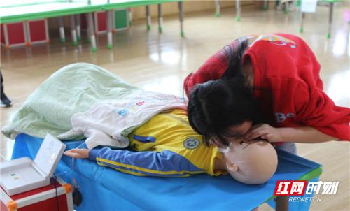 常宁市妇幼保健院儿保专家进行安全救护演示。
