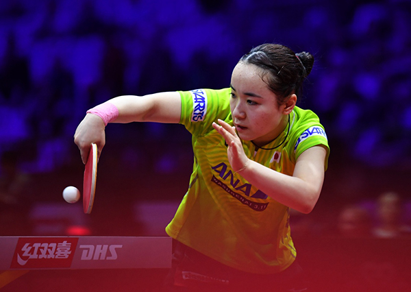伊藤美诚在比赛中。