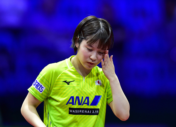 平野美宇有些沮丧。