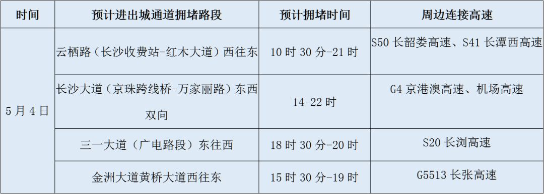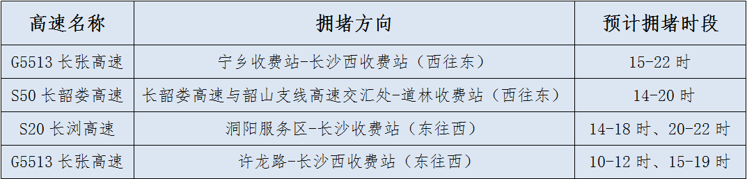 长沙周边高速返程易缓行道路