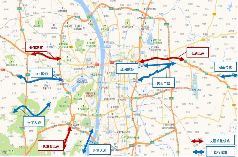 长沙周边返程易缓行进出城通道