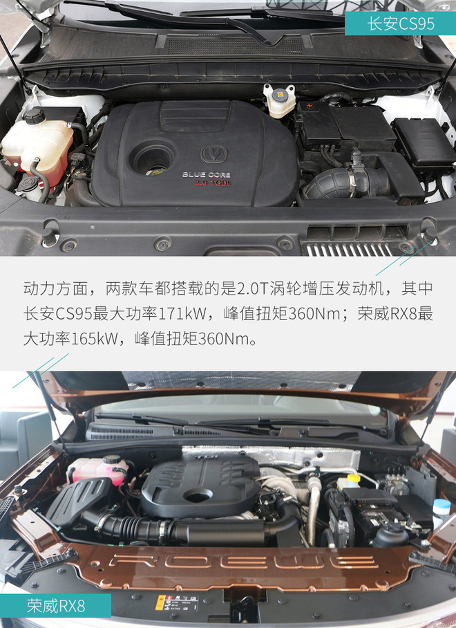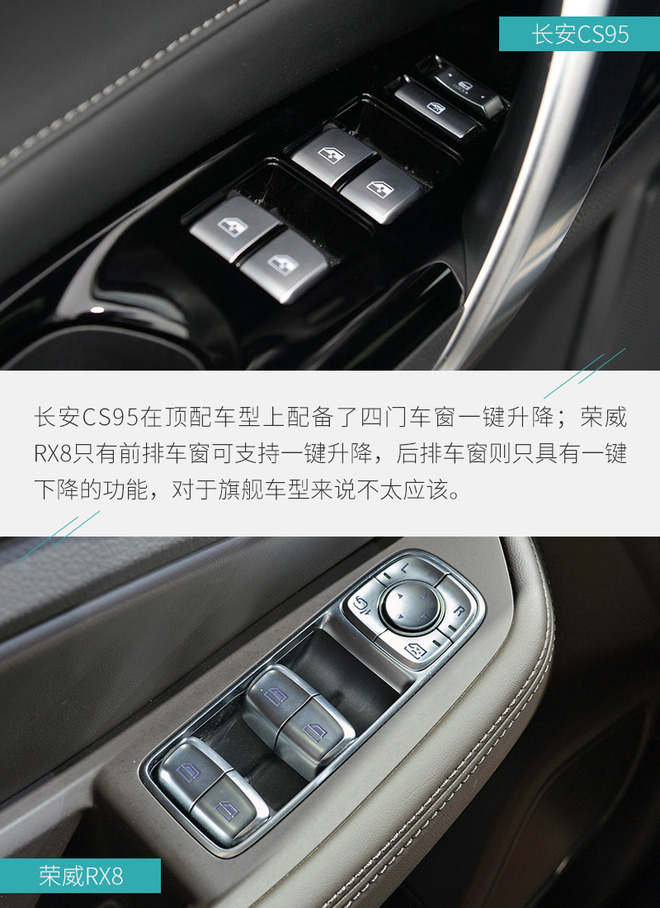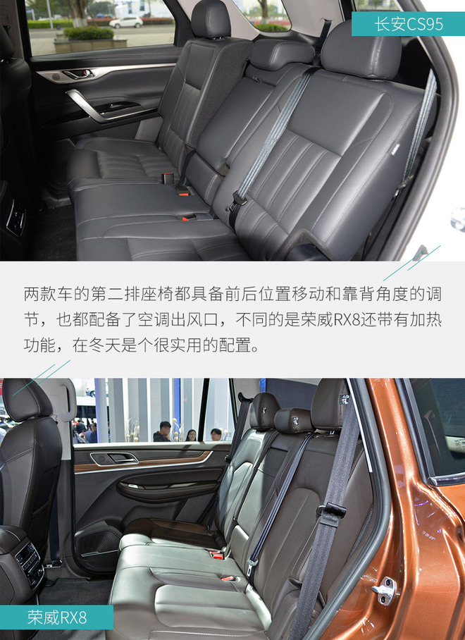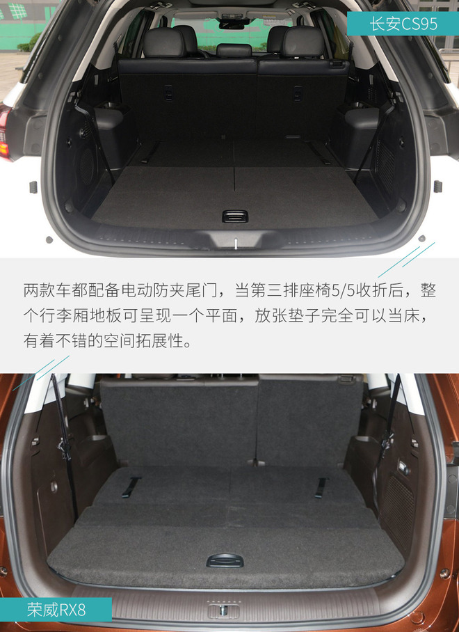 全文总结:对于20万元级别的自主品牌7座SUV车型而言,大多数消费者还是持以谨慎的态度,就产品实力来讲,两款车的侧重点很不一样。长安CS95在改款后主要变化在于外观和内饰设计上,两块液晶屏的应用提高了车内的科技感,配合适时四驱系统明显走着城市路线;荣威RX8拥有更加出色的车身尺寸,加上非承载式车身与全时四驱系统,这款车能够带你去更多地方,看更多风景,所以究竟怎么选还是要看您的实际需求。