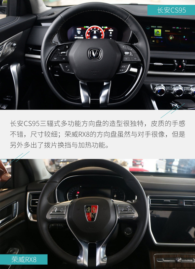 自主品牌七座SUV对于各个厂家来说虽然不是主力车型,但作为旗舰产品体现品牌硬实力却必不可少。老款长安CS95的整体实力并不弱,但唯独外观颜值欠缺了一些,而新款CS95使用全新家族设计语言后大幅提升了此项竞争力,并且内饰也有不小的变化;荣威RX8的强项在于精致的外观设计和互联网思维的内饰氛围。两款车各自代表了家族最高水平,品牌影响力也相差不多,那么当这两款车相遇时谁更有实力坐到霸主位置,今天我们就进行一次全面的对比。