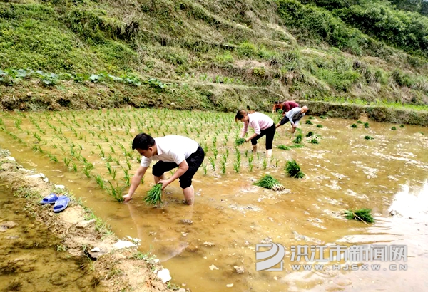 红网时刻5月31日讯(通讯员 邓萍)5月29日,驻洪江市群峰乡蛇形村的扶贫第一书记蒋良文来到兰家溪组,深入田间地头,义务帮助劳动力短缺的贫困户插秧,为贫困户解决实际困难。