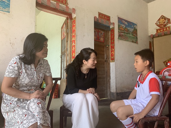 “你今天在学校表演什么节目?现在在班上担任班干部吗?”为李丛送上慰问金与礼物后,肖慧便与他唠起了家常,在谈话中,李丛逐渐放下腼腆,带着收获礼物的喜悦向肖慧道谢。