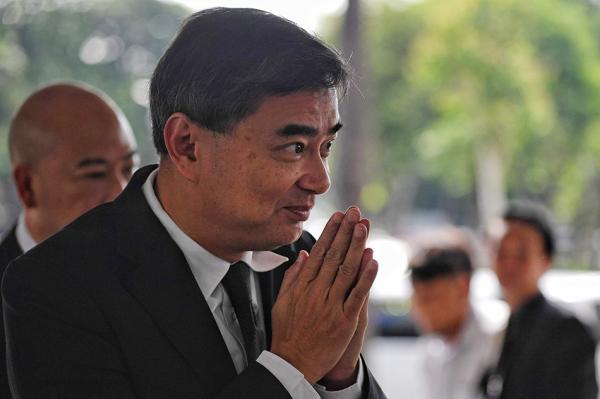 当地时间2019年6月5日,泰国曼谷,泰国民主党前党魁阿披实参加新总理选举投票。 视觉中国 图