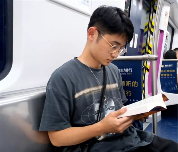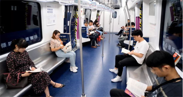 这趟列车也呈现别样的风景,乘客不再只关注手机,而是拿起书本,静静地翻阅起来。