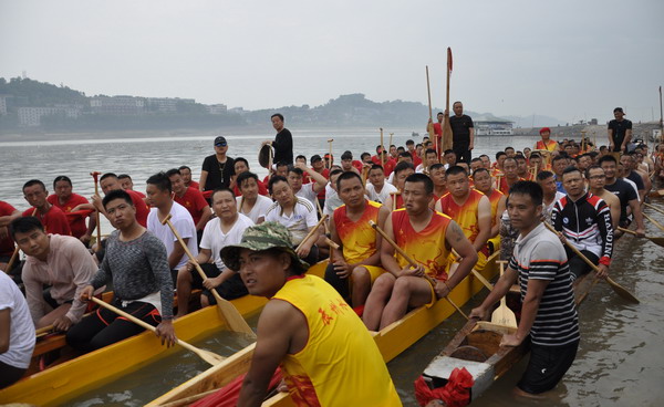 来自沅陵镇龙舟协会和沅陵镇的黄草尾、苦藤铺、老鸦溪、桃花岭、凤凰山高洲等村(社区)的6支参赛龙舟队,在沅水河畔摇旗呐喊,跃跃欲试。上红仪式开始后,6只龙舟从沅水对岸同时竞渡而来,“嗨嚯嗨嚯”的号子如雷,汉子们挥桨击水,6只龙舟如利箭出弦,岸边群众呐喊助威。