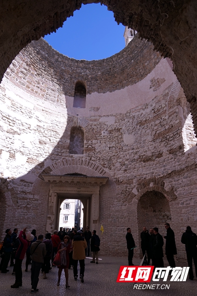 我们一行经过迎宾大厅时,有六位男青年一旁等候,这是无伴奏和声的演唱者。他们利用这圆形大厅的回声功能表演无伴奏合唱节目,给了我们极大的艺术享受,也让我对眼前这大厅曾经的主人、公元三世纪时的罗马皇帝戴克里先,产生浓厚的兴趣。