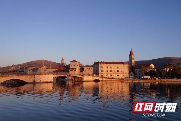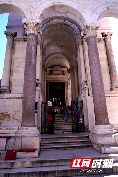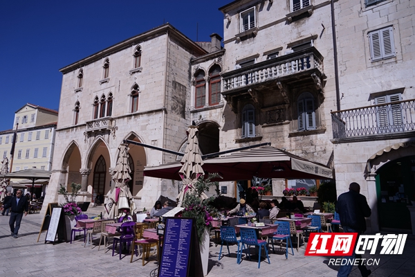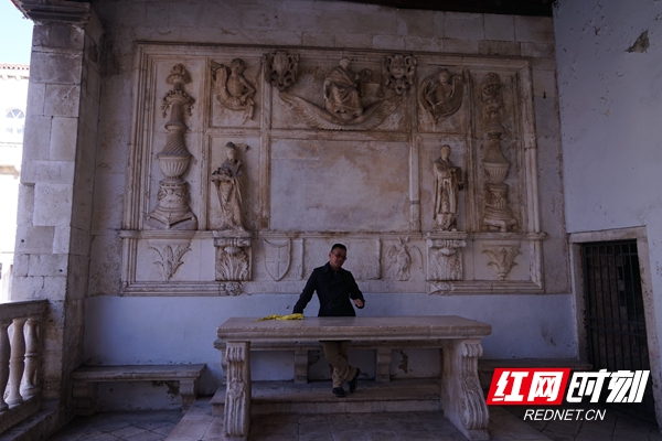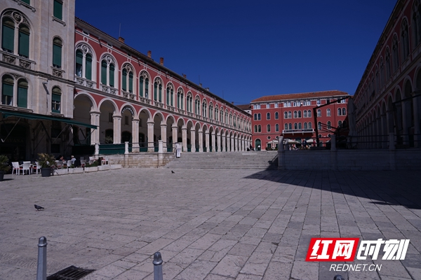 在戴克里先皇宫之外的坪地里,我没有寻见到退居山野后的戴克里先为之得意的卷心菜地。一旁,有一幢觉得非常眼熟的建筑,引起我的关注:白色的立石柱、橘红的墙面、拱形的门洞……这不就是意大利威尼斯城广场一侧、市政厅的翻版吗?这一建于15世纪的、同为市政厅的建筑,无意中告诉了我们一行中国游客:克罗地亚不仅在1700年前曾经是罗马帝国的属地,14-15世纪又遭受过威尼斯王国统治!哎!西有古罗马帝国、东临奥斯曼帝国,地处巴尔干半岛的克罗地亚,一个多灾多难、历经磨难的民族!