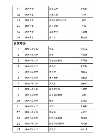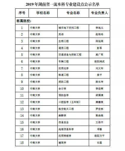 近日,经各高校申报、组织专家审核,湖南省教育厅拟确定省属本科高校的 348 个本科专业为湖南省一流本科专业建设点,并推荐至教育部申报国家级一流本科专业建设点;中南大学和湖南大学的 46 个本科专业为湖南省一流本科专业建设点,并予以公示。