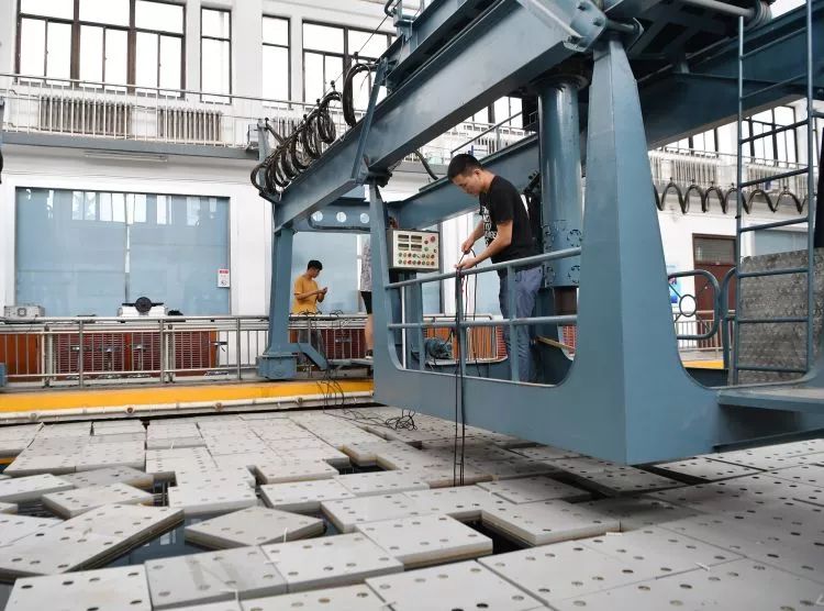 在西北工业大学航海学院消声水池实验室,学生在调试实验仪器。