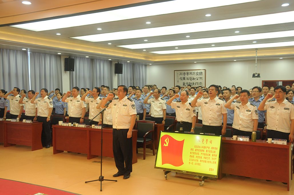上午9:00,会议在雄壮的国歌声中拉开序幕。牢记使命,当从红船开始。全体参会人员在钟艺兵的领誓下,重温入党誓词,集体过“政治生日”。