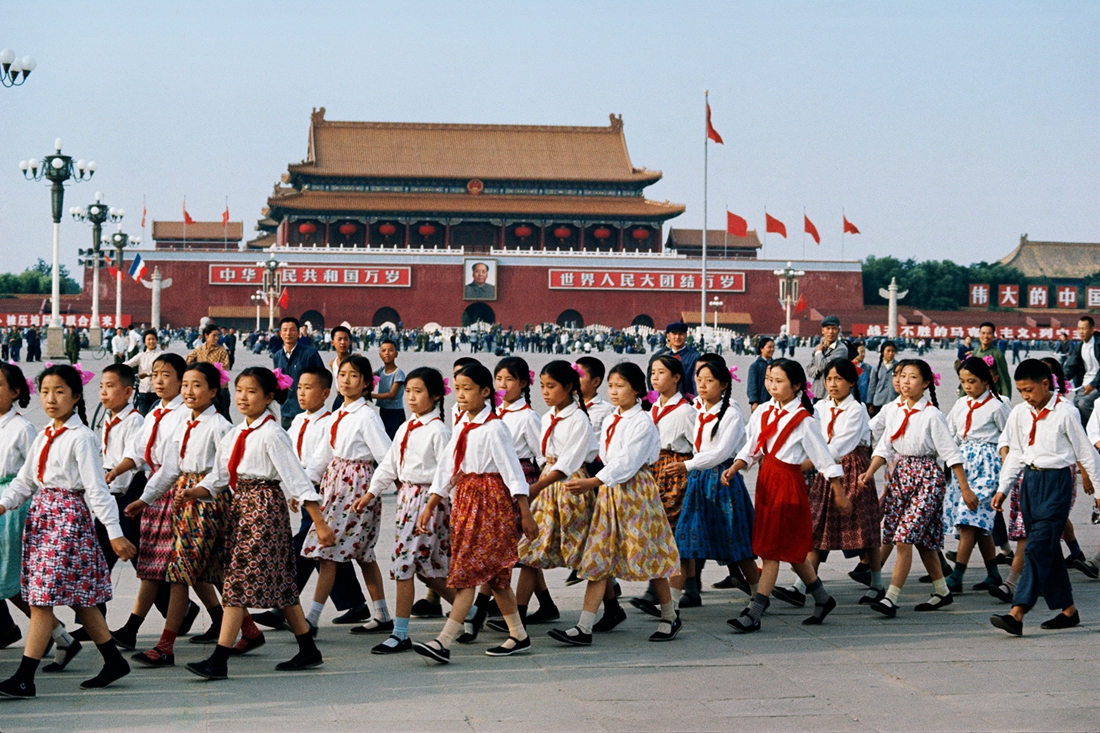布鲁诺·巴贝,小学生准备在天安门广场欢迎法国总统蓬皮杜,北京,摄影,艺术微喷,1973,75×110cm 布鲁诺·巴贝与中国的不解之缘源于1973年跟随法国时任总统蓬皮杜访华,他在中国按下的第一次快门便同时代与历史紧密联系在一起。