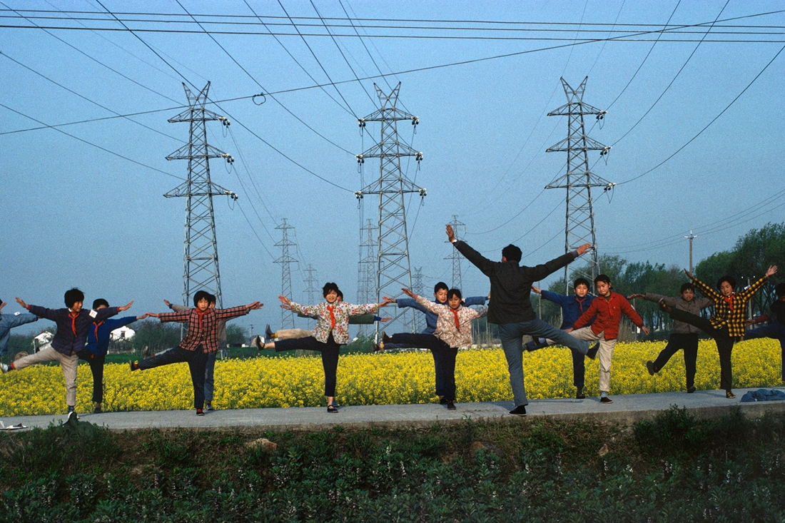 布鲁诺·巴贝,在田野上做早操,上海,摄影,艺术微喷,1980,75×110cm 值得注意的是,在巴贝捕捉到的“中国本色”中,观众亦可一览彩色摄影方兴未艾之际质朴又不乏质感的精彩。