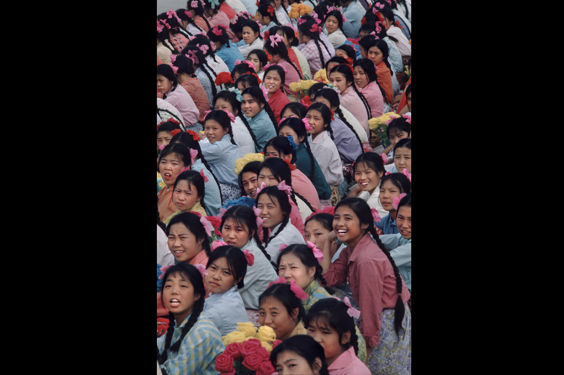 布鲁诺·巴贝,天安门广场上学生们热烈欢迎法国总统蓬皮杜,北京,摄影,艺术微喷,1973,75×50cm 法国摄影师布鲁诺·巴贝(Bruno Barbey)是法兰西艺术院院士,曾任玛格南图片社全球主席。