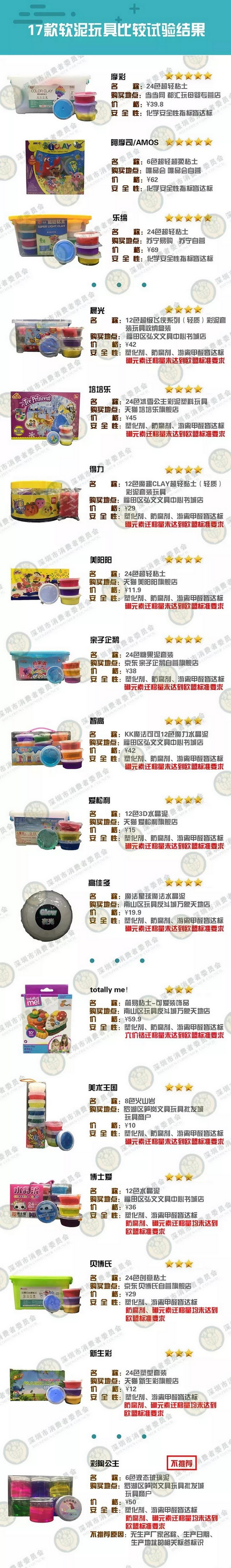 本次比较试验结果还发现,在六价铬迁移量检测项目上,totally me!简易粘土样品中六价铬迁移量达到1mg/kg,是欧盟标准对超轻黏土类软泥玩具限量要求(0.02mg/kg)的50倍。