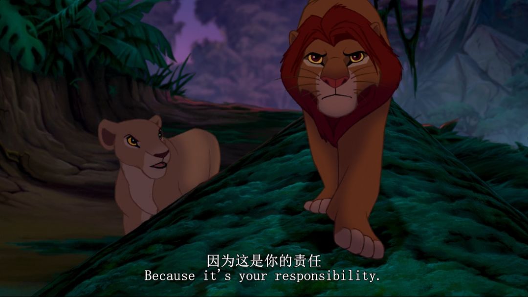 如辛巴,要担负起狮子王的责任,驱逐坏人,保护领土。