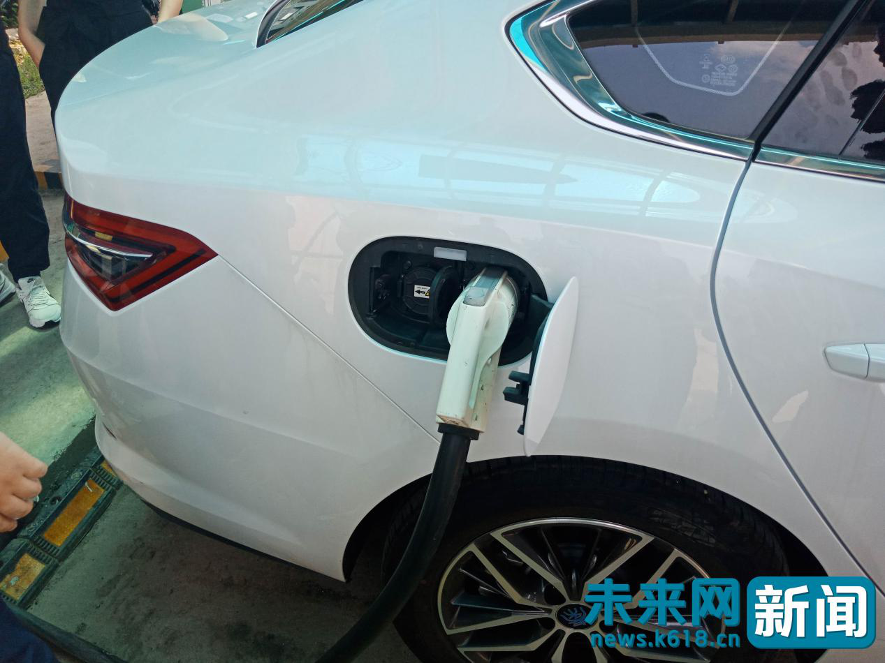 电动汽车车主正在为汽车进行充电。未来网记者 刘文静 摄