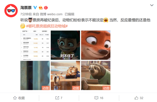 据@淘票票 消息,截至8月2日12时许,《哪吒之魔童降世》票房超过《疯狂动物城》,位列中国影史动画电影票房第一。