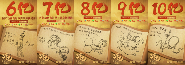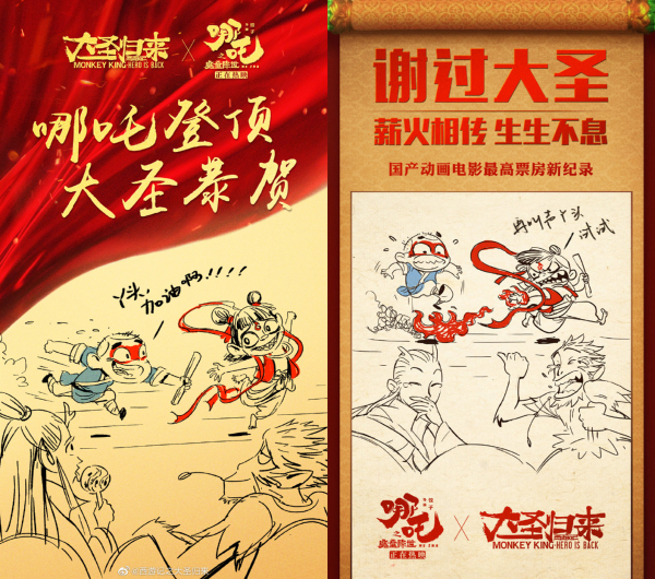 “大圣”道贺海报(左),哪吒感谢海报(右)