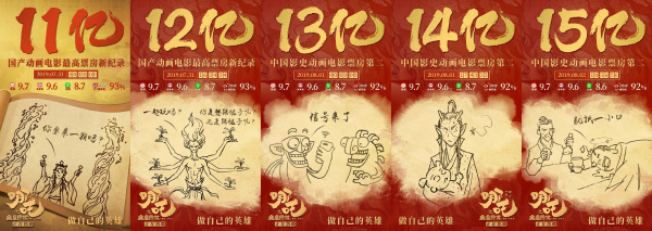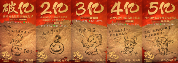 据统计,7月30日下午4点,《哪吒之魔童降世》上映第5天,累计票房已超过10亿元,超越《西游记之大圣归来》成为国产动画电影票房冠军。
