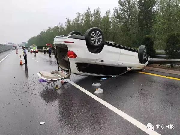 据大河报客户端报道,事故发生在安阳南林高速公路开发区段。当天17时46分,一辆白色奔驰越野车由西向东行驶过裎中,遇到雷雨天气,车辆虽然打开了示廓灯,但并未减速,由于雨后路面变得湿滑,导致车辆失控,2次撞击中央隔离护栏之后翻转180度,横在了超车道上。