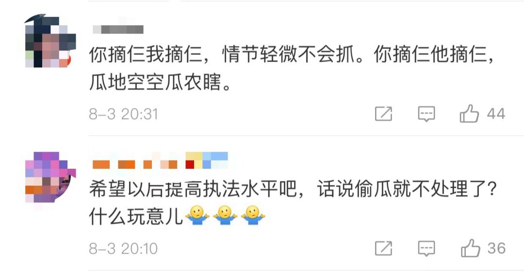 网友对“偷瓜事件”发表评论 微博截图
