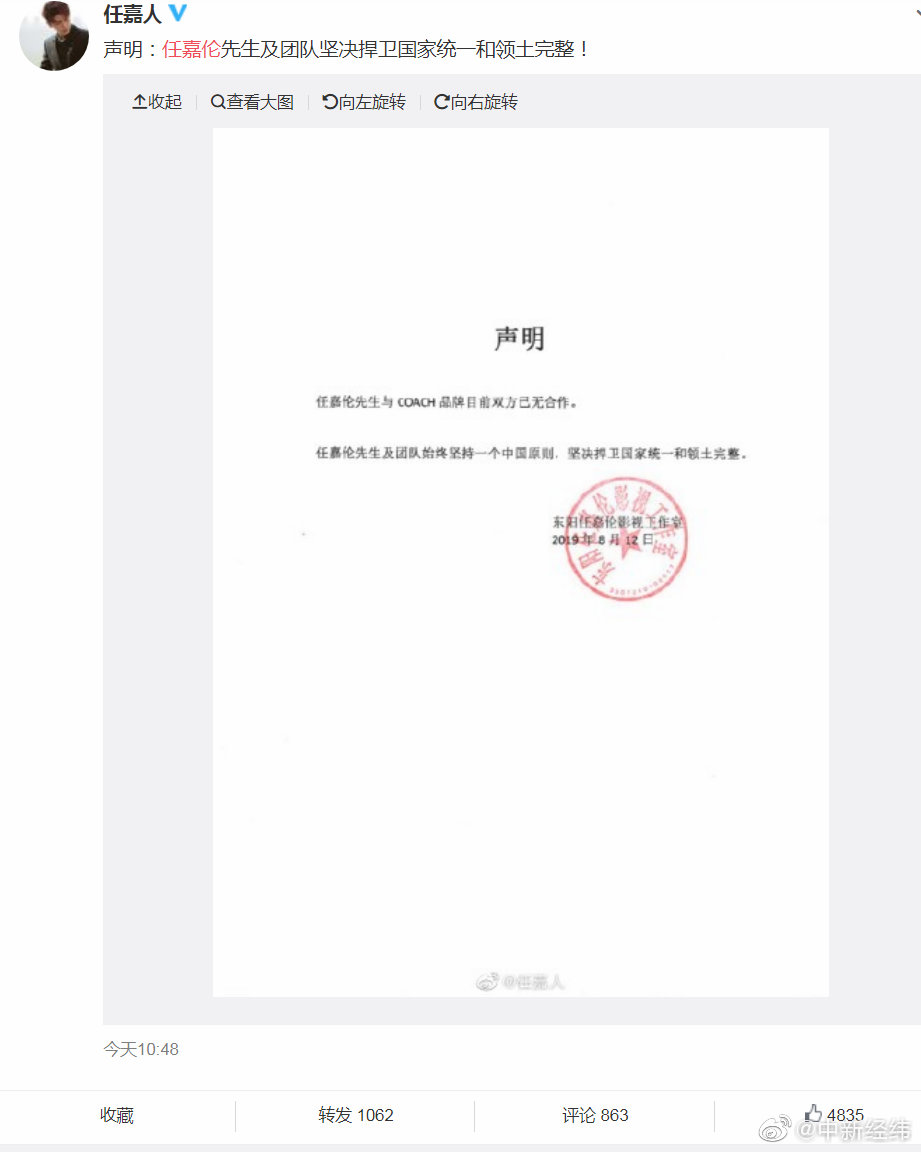 任嘉伦方声明。