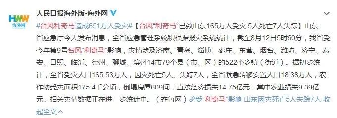 据中国气象台称,台风“利奇马”将成为今年以来登陆我国最强、影响范围最大、影响持续时间最长、风雨灾害损害损失最大的台风。