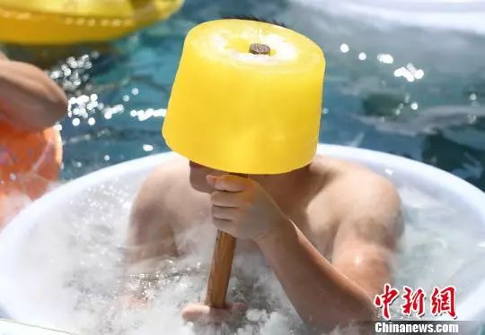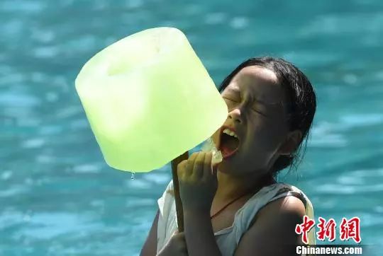 8月13日,重庆迎来近40℃的高温天气,涪陵红酒小镇一水上乐园举行高温消暑系列活动,还为游客们送上巨型冰棍。