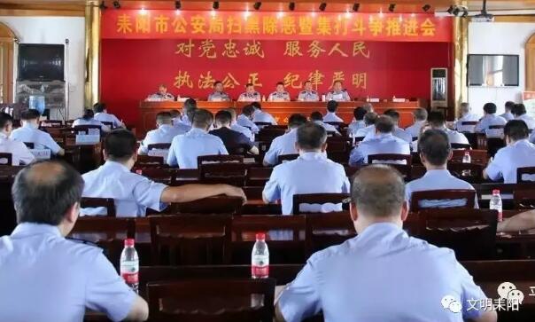红网耒阳站讯(通讯员 黄振 李俊锋 罗显斌 ) 8月14日上午,耒阳市公安局召开扫黑除恶暨集打斗争推进会,总结成绩,分析形势,部署下阶段工作,推动全市公安机关扫黑除恶、集打斗争向纵深发展。市政府副市长、公安局局长邓朝晖出席会议并讲话,市公安局政委曾善后主持会议。