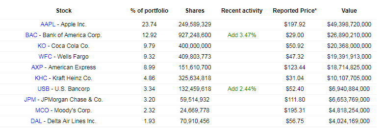 伯克希尔·哈撒韦公司(Berkshire Hathaway)二季度的美股持仓情况