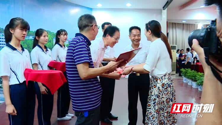 活动现场,粤港澳政协委员和企业家代表为38名被国内重点院校录取的“准大学生”进行颁奖;县领导胡军、赵群子、文丽萍、廖权赋分别为受表彰教师、班主任及校长颁奖。县委书记刘铁健为爱心委员和企业家代表现场颁发荣誉证书。