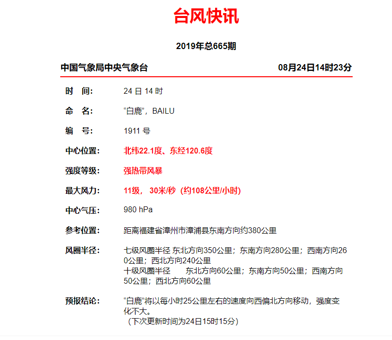 今年第11号台风“白鹿”