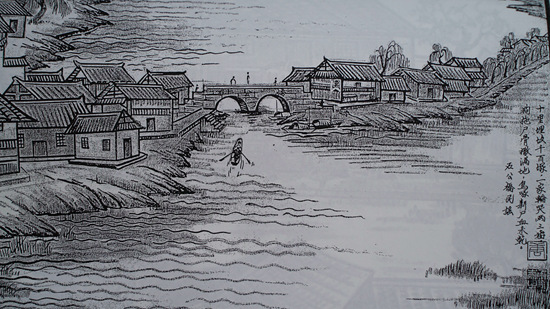 日军细菌战受害者丁德望手绘的湖南省常德市石公桥镇1941年街景。这个距市区30公里的繁荣小镇当时有上千人死于侵华日军细菌战造成的鼠疫。