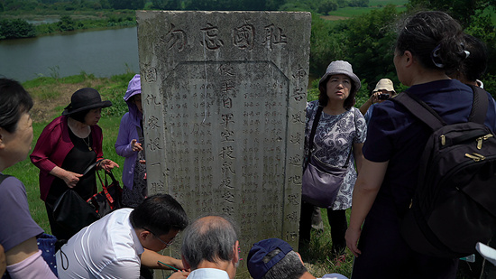 7月3日,湖南省常德市石公桥镇石公桥码头,几名日本和平反战团体成员调查当年细菌战情况,这里的石碑上刻满了鼠疫受害者的名字。近几年,他们多次到访湖南常德、浙江衢州等细菌战受害地,调查、揭露侵华日军罪行。